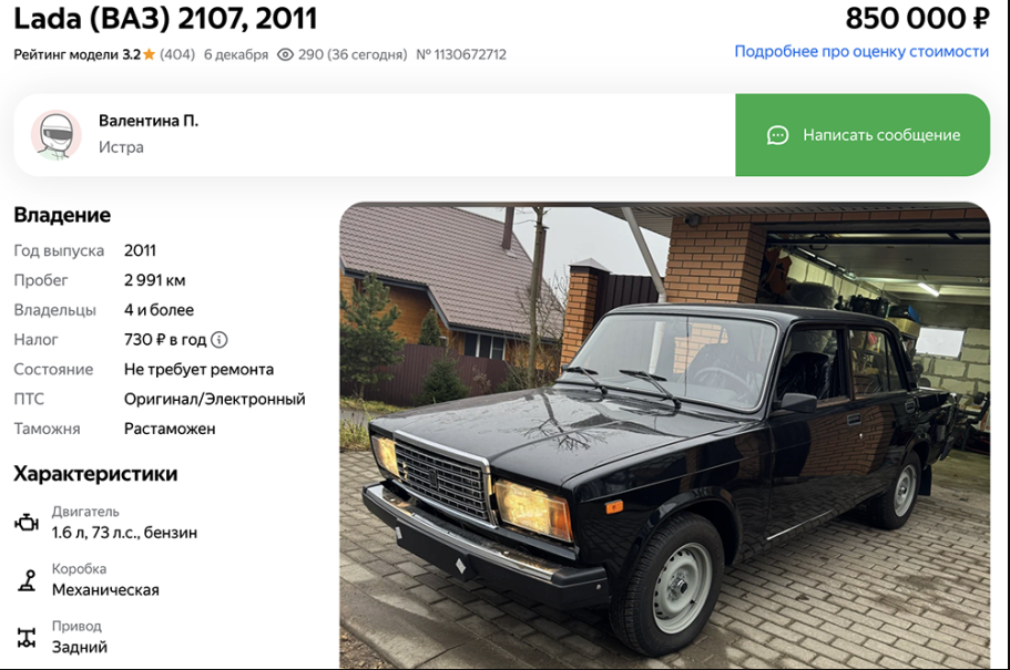 Новый ВАЗ-2107 сняли с хранения спустя 14 лет и выставили на продажу