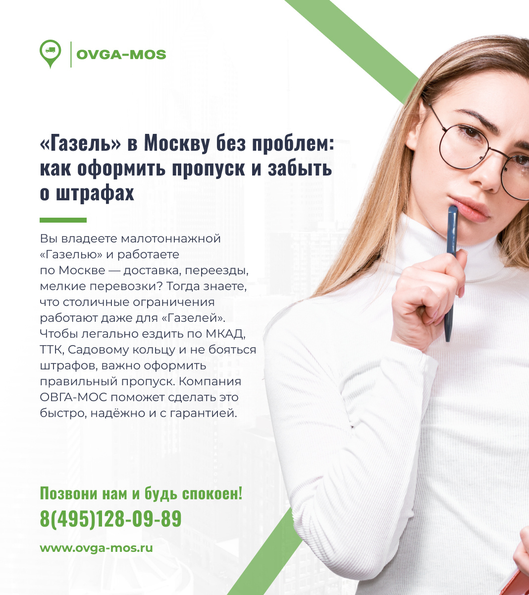 Вы владеете малотоннажной «Газелью» и работаете по Москве — доставка, переезды, мелкие перевозки? Тогда знаете, что столичные ограничения работают даже для «Газелей». Чтобы легально ездить по МКАД, ТТК, Садовому кольцу и не бояться штрафов, важно оформить правильный пропуск. Компания ОВГА-МОС поможет сделать это быстро, надёжно и с гарантией. Почему «Газели» тоже могут нуждаться в пропуске Многие считают, что пропуски нужны только для крупных грузовиков. Но это не так: «Газель» — это малотоннажный грузовой автомобиль, и хотя её масса часто не превышает 3,5 тонны, при определённых условиях (грузоподъёмность, вес груза, время и зона движения) она подпадает под правила выдачи пропусков. В зависимости от общей массы, грузоподъёмности и зоны движения — требуется либо стандартный пропуск, либо специальные разрешения для въезда в Москву, на МКАД, ТТК или в центр. Без оформления разрешения «Газель» рискует быть пойманной на камеру — и получить штраф за нарушение правил движения грузового т