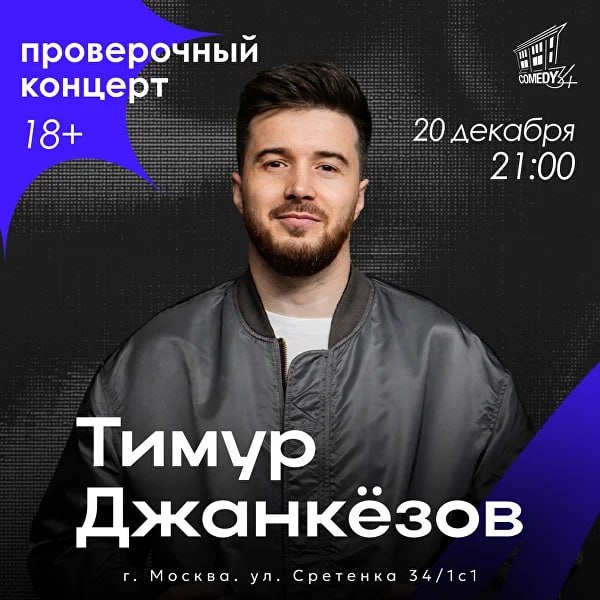 20.12||Тимур Джанкёзов. Проверочный концерт 🔥 Резидент StandUp на ТНТ, автор и основатель шоу « Миллионер из трущоб», «Попробуй рассмешить», «Импровизация с залом» на YouTube и ВК Видео Приходи если хочешь с кайфом провести время, тебя будут ждать шутки и приятная атмосфера нашего клуба ⚡️Билеты