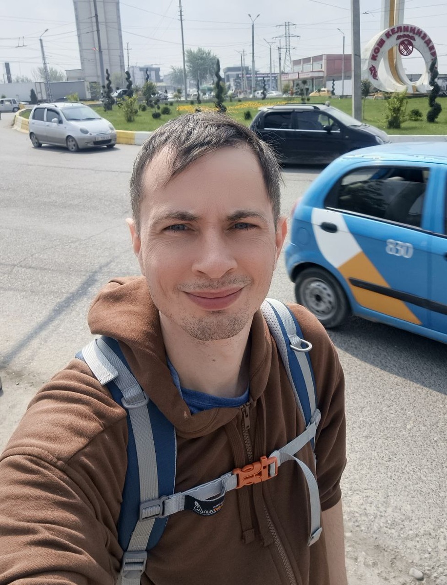 🔥 Традиционное фото с границы новой страны: Киргизия. Моя страна №26 За все свои путешествия я ни разу не покупал тур или путёвку - все мои путешествия относятся к разряду самостоятельных. Что для меня значит "самостоятельное путешествие": ⤵️ Сам покупаю билеты на самолёты-поезда-автобусы Езжу рюкзаком, а не с чемоданом Сам перехожу границы Сам ищу себе отели или хостел Сам планирую для себя маршрут Не очень интересуюсь дворцами и гробницами, музеями и памятниками В основном мне интересна природа и нетуристические места, а так же быт обычных, простых людей. Первый раз в то, что можно назвать «путешествием», или если точнее «самостоятельным путешествием» я отправился в 2007 году. Мне тогда было 20 лет. Это была поездка автостопом длительностью месяц по маршруту Новосибирск – Москва – Новосибирск. И для меня это была некая внутренняя революция – отважиться на такое путешествие. До 20-летнего возраста я практически не покидал пределов моего родного Новосибирска, и уж тем более самостоят