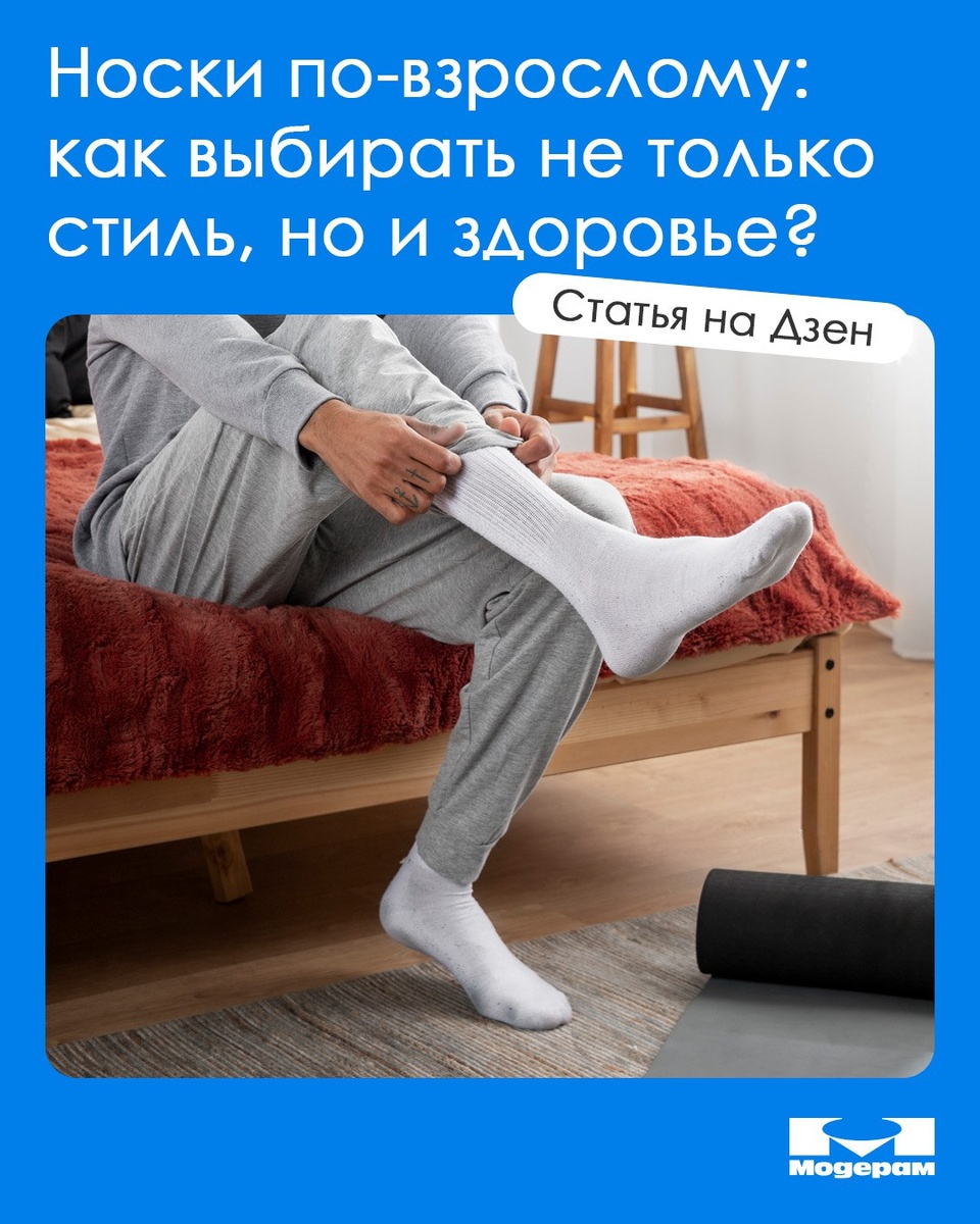 Большинство людей делятся на два лагеря: те, кто покупает упаковку чёрных носков и не заморачивается, и те, кто подбирает пары под настроение — с яркими принтами, полосками, котами и чем угодно ещё 🧦🧦 Но как бы мы ни относились к стилю, есть одна вещь, о которой многие забывают: носок — это первый слой, который контактирует со стопой каждый день, а значит, напрямую влияет на комфорт, здоровье кожи и даже состояние суставов. В нашей новой статье на Дзен разберёмся, какие носки бывают, что скрывается за составом, и как выбрать пару, которая работает, а не просто лежит в шкафу.