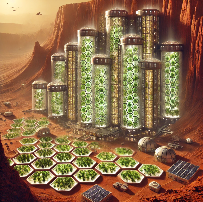 Марсианские города с вертикальными теплицами, встроенными в стены кратеров