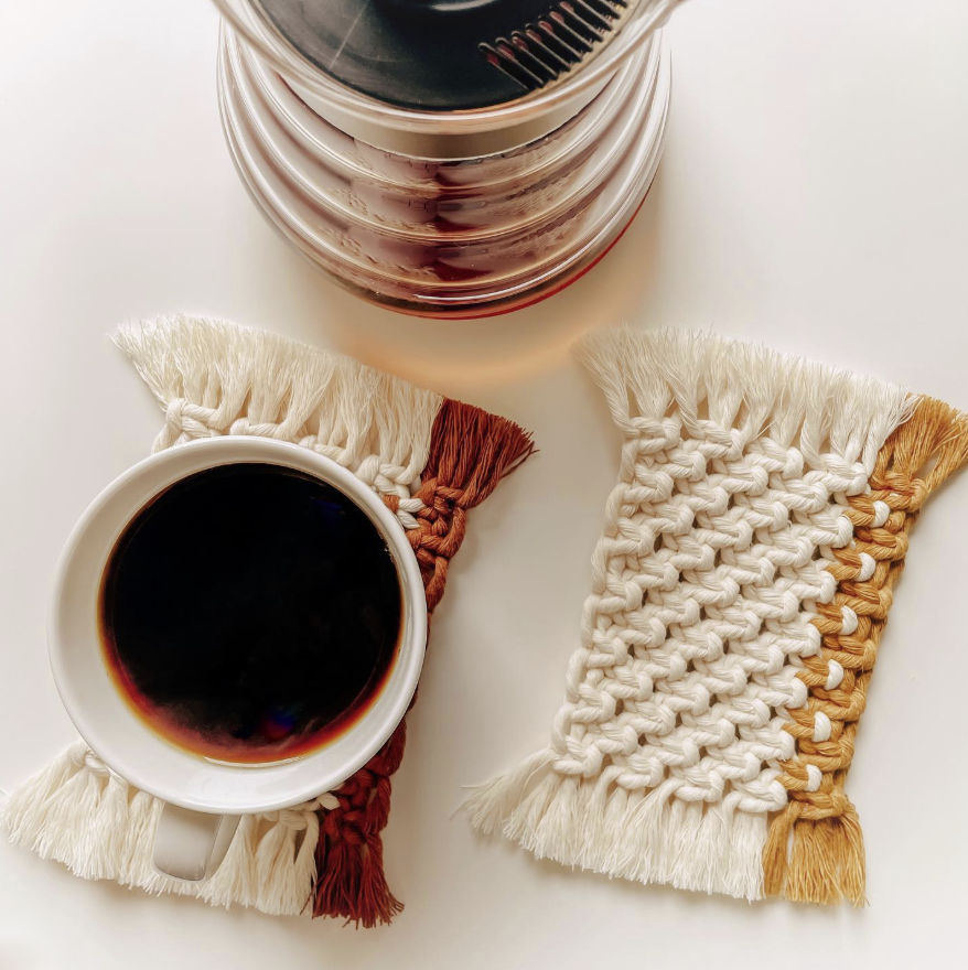 Все наши статьи про макраме здесь. Смотрите уроки по плетению квадратных узлов. Сегодня освоим технику создания ровного плоского полотна с помощью узлов — на примере изготовления декоративной подставки. Разберём ключевые приёмы, тонкости натяжения нитей и способы аккуратной отделки края. Что понадобится Основа для крепления (направляющий шнур) — 2 шт.; Рабочие нити для плетения: слоновая кость — 3 шнура; светло‑голубые — 2 шнура. ! Итого: 10 рабочих шнуров (каждый складываем пополам перед работой). Фиксаторы (булавки или гвоздики) — для закрепления на доске; Вспомогательный инструмент (пинцет или штопальная игла) — для протягивания нитей. Примечание: Серые линии на схеме обозначают шнуры слоновой кости, голубые — соответствующие по цвету. Нити, которые в процессе работы чередуются между функциями «держащих» и «рабочих», далее именуются «плетущими». Пошаговый процесс Закрепление монтажной нити Свяжите концы монтажной нити. Прикрепите к рабочей доске, втыкая фиксатор под углом 45° в н