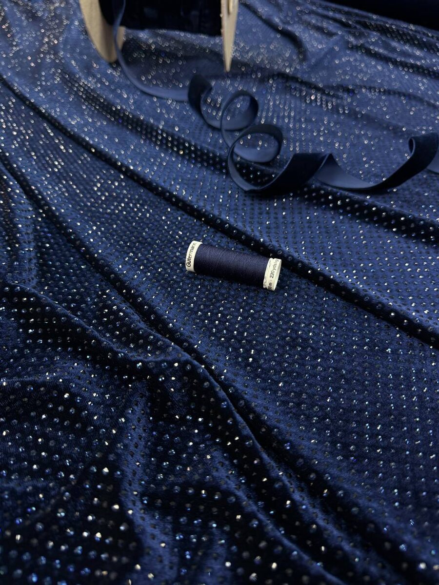 Невероятно красивый трикотажный бархат (велюр), сочетает в себе богатую бархатную текстуру и роскошный блеск декоративных камней. Насыщенный синий. Ткань мягкая, хорошо драпируется, тяжелая, приятная тактильно, а благодаря декоративным камням отражает свет, что выглядит очень эффектно. Ширина части с камнями 1м 25см + свободный край Стоимость 9900₽за метр Производство: Италия ! В НАЛИЧИИ УЖЕ НЕМНОГО, ПОВТОРА НЕ БУДЕТ ! На первый заказ мы дарим Вам скидку 10% Для заказа пишите пожалуйста нам в телеграмм с волшебной фразой «Пришла из Дзен» Ссылка на наш телеграмм канал: Ждём Вас ежедневно, с 10:00 до 20:00, по адресу: г.Москва, ул Мнёвники 6. п 6