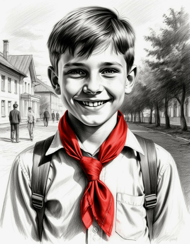 И алый пионерский галстук на груди.