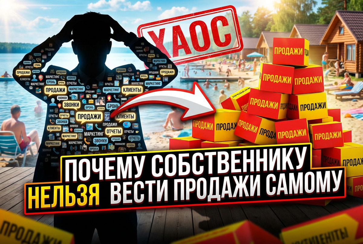 Это больная тема. Но если вы собственник базы отдыха — лучше услышать её от меня, чем от рынка. Потому что продажи — это последнее, чем должен заниматься владелец. Вот почему: Вы знаете каждый метр территории, каждую доску на домике — и пытаетесь объяснить всё сразу.