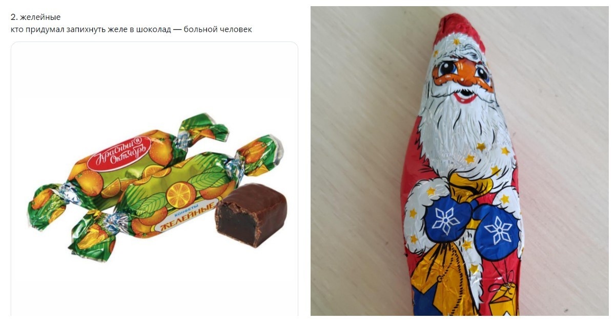 Сладкий подарок - такой же символ Нового года, как традиционные салаты, бутерброды с икрой и мандарины. Каждый в детстве с нетерпением ждал, когда родители принесут с работы красочную коробочку с конфетами. Многие дети, получив подарок, сортируют сладости: эти съем сейчас, эти оставлю на следующий год, эти отдам родителям и т.д. К сожалению, в сладостной начинке новогоднего сундучка попадаются как вкусные конфеты, так и не очень. К тому же предприниматели пытаются заработать в период ажиотажа и сбагрить залежалые и не особенно вкусные сладости. Пользователи составили рейтинг антиконфет, в который попала как малоизвестная, так и примелькавшаяся продукция.