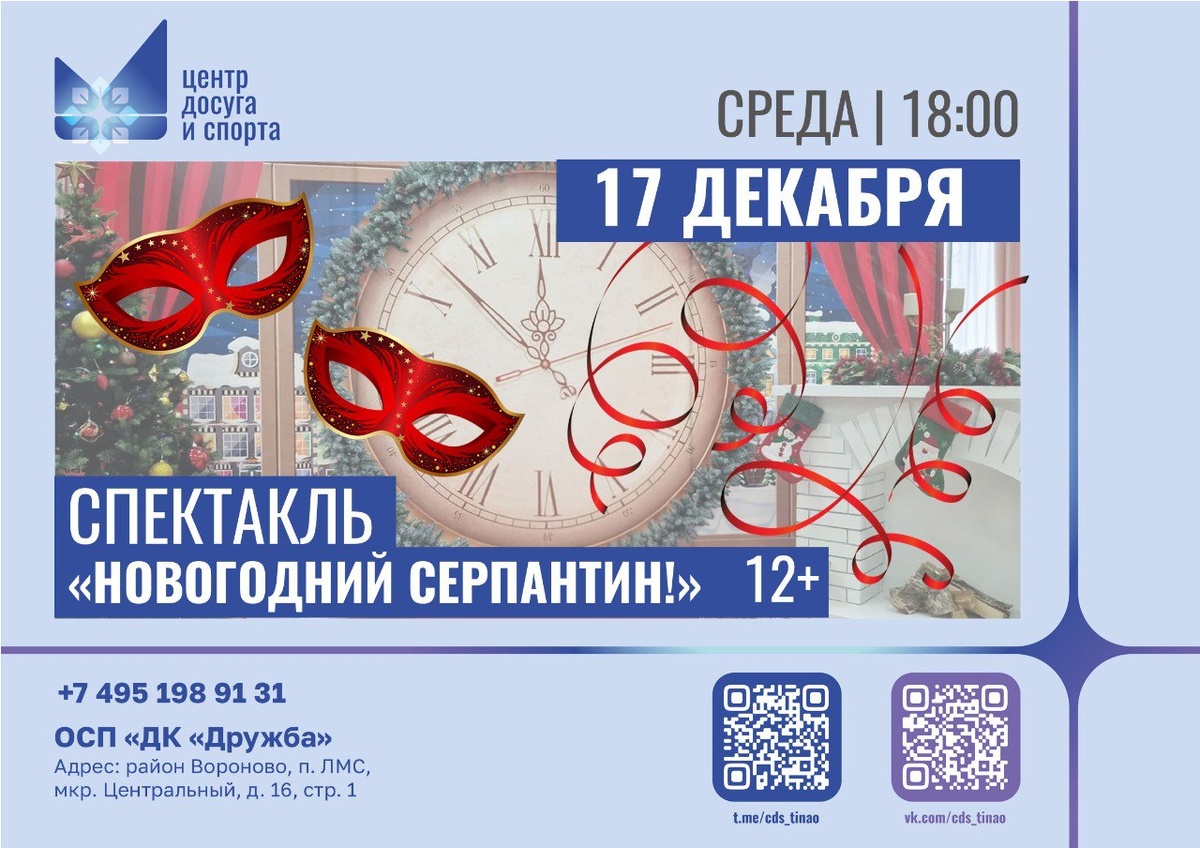 🎊🎉 Театральный коллектив «Счастливый случай» приглашает всех, кто любит веселье, шутки и предновогодние чудеса, на уникальный спектакль-компиляцию «НОВОГОДНИЙ СЕРПАНТИН!»