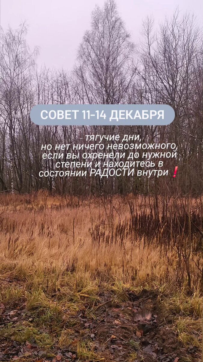 Совет 11-14 декабря - тягучие дни, но нет ничего невозможного, если вы охренели до нужной степени и нашли состояние РАДОСТИ внутри❗ @актуальное #родонит - баланс "хочу" и "надо". ...Когда у меня настроение отстой, я представляю, что моя душа ждала в очереди миллиарды лет, чтобы стать человеком. Там, на небе, так себе веселье — в основном скукотища полная. И вот наши души, чтобы как-то развеяться, подглядывают за людьми на земле. А на земле столько всего! Ладно, есть чувство - что-то завершается. Изменения в настроении. Период меланхолии или замерших эмоций. Ощущение подавления. Ну что ж, прощаемся с отжившим.🫣 После этого может появиться кисель с кашей в голове. Еще важный момент до 15 декабря. Если есть или появиться какая-то проблема, а кто-то ринется ее исправлять, это может привести к еще большей проблеме. Так что в случае чего замираем и не шевелимся. Будет как будет, это к лучшему. Вечерами вероятно раздражительность, состояние беспокойства и тревоги по поводу со