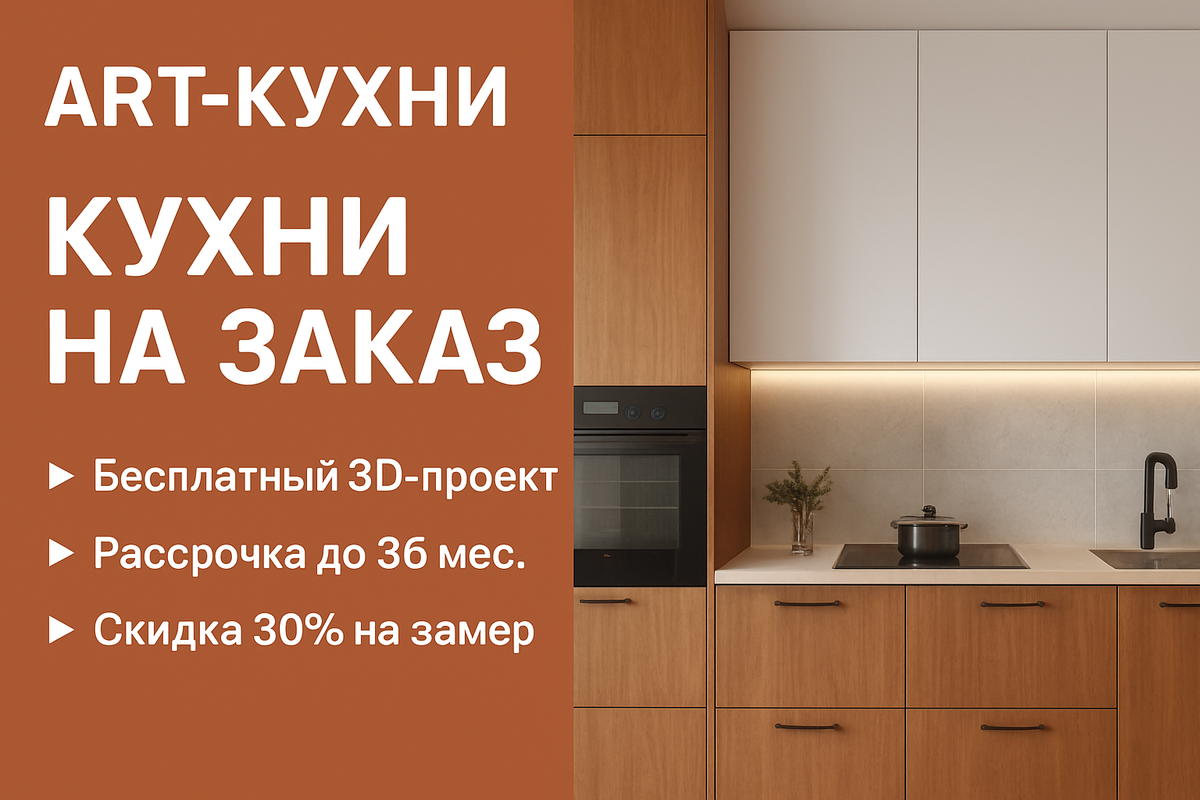 ART-Кухни — семейная компания из Самары, которая на протяжении восьми лет проектирует, производит и устанавливает кухни на заказ. Благодаря собственному автоматизированному производству фирма выпускает до 10 кухонь в месяц, обеспечивая быстрые сроки и стабильно высокое качество. Регион работы: Самара и пригород