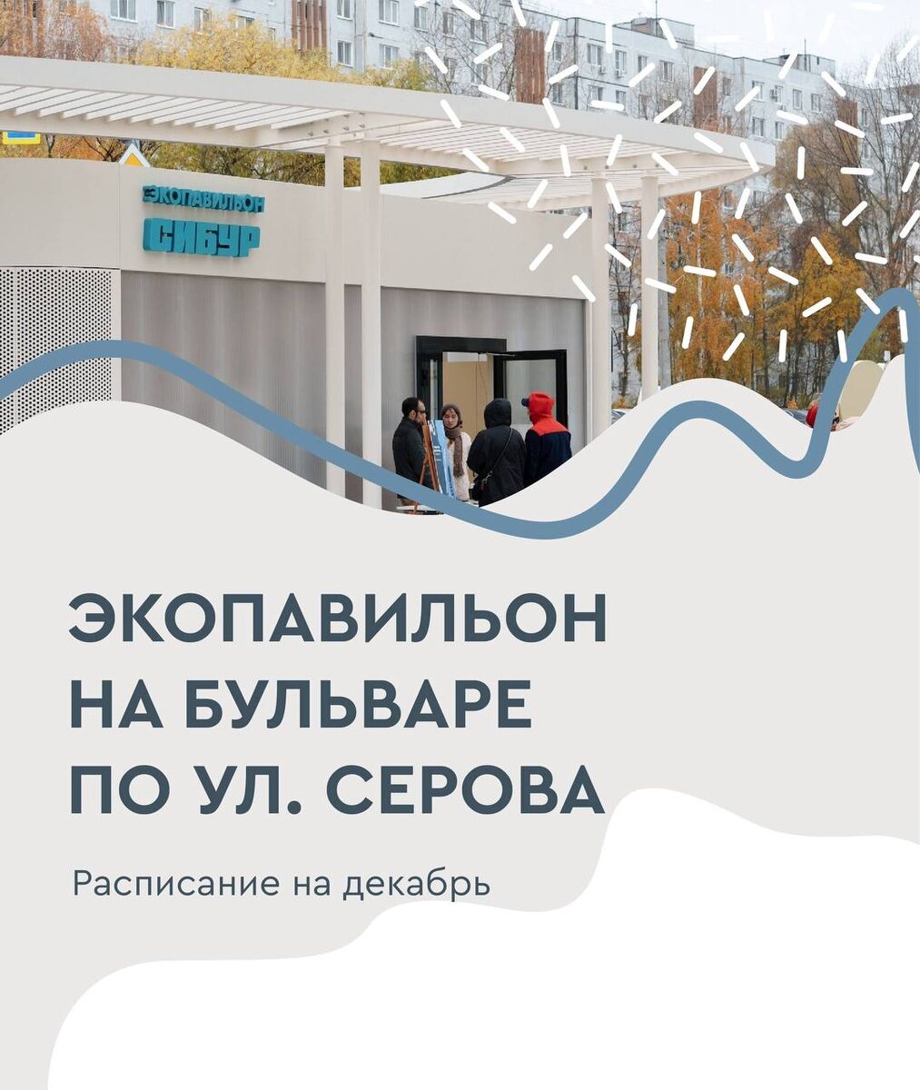 Экопавильон бульвара по ул. Серова 🗓️ 13,14,20 декабря 💸 бесплатно 🏫 павильон СИБУР 📍 бульвар по ул. Серова 13 декабря, 15:00 🔸Встреча с психологом «Почему семейные кризисы случаются и что с этим делать?» 14 декабря, 11:00 🔸Лекция «Как помочь питомцу провести новогодние праздники комфортно?» 20 декабря, 16:30 🔸Экоурок «Вторая жизнь пластика» ➡️ РЕГИСТРАЦИЯ ⬅️ ❗️ Детская Афиша | Казань Больше информации в нашей группе, переходите