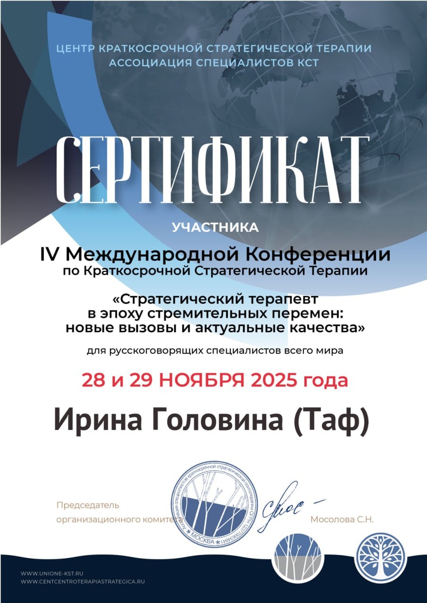 Чтобы лучше помогать клиентам, важно следить за развитием методов, в которых работаешь, и обмениваться опытом с коллегами. И я с огромным удовольствием слежу и обмениваюсь😍 Для чего, среди прочего, хожу на мероприятия – те, где не просто ля-ля, а где можно получить информацию, применимую на практике. Одна из таких – ежегодная Международная конференция по Краткосрочной стратегической терапии. Самый ценный улов с конференции этого года: 🔘новая модификация стратегической терапии (особенно хороша с агрессивными клиентами - попробую💫), 🔘специальная модель стратегического диалога (больше информации о проблеме мне, больше инсайтов клиенту - круто-круто🔥), 🔘полезное о работе с новыми нехимическими зависимостями (например, онлайн-буллинг – не сталкивалась, очень интересно🌟) А еще прикол: 🎧 оригинал не транслировали (почему???😡), так что иностранных спикеров я слушала в переводе своих хорошо знакомых коллег-синхронистов! (О своей первой профессии писала здесь) Интересные и разно