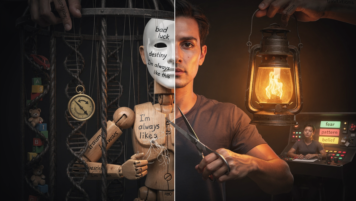 Эта фраза — не просто красивая цитата для обложки дневника. Это безжалостно точный диагноз состоянию, в котором живут миллионы людей. Это описание тюрьмы, стены которой невидимы, а ключ спрятан у самого заключенного. Что, если твоя «судьба» — это не предначертанный свыше рок, а хорошо отрепетированная пьеса, где режиссер — твое же собственное бессознательное? Пьеса, в которой ты раз за разом выбираешь «не тех» партнеров, наступаешь на одни и те же грабли на работе, саботируешь свой успех на финишной прямой и объясняешь это роковым стечением обстоятельств. «Ну вот, опять не везет», «видимо, такова моя судьба». Привычка называть судьбой то, что можно изменить, — самый хитрый самообман. Большинство продолжают жить в нём годами. Почему он хитрый? Потому что он снимает с нас ответственность и дарует ложное утешение. Удобно винить в своих неудачах звезды, карму, плохое детство или «такого уж меня Бог создал». Это освобождает от необходимости что-то менять, копаться в себе, сталкиваться с дис