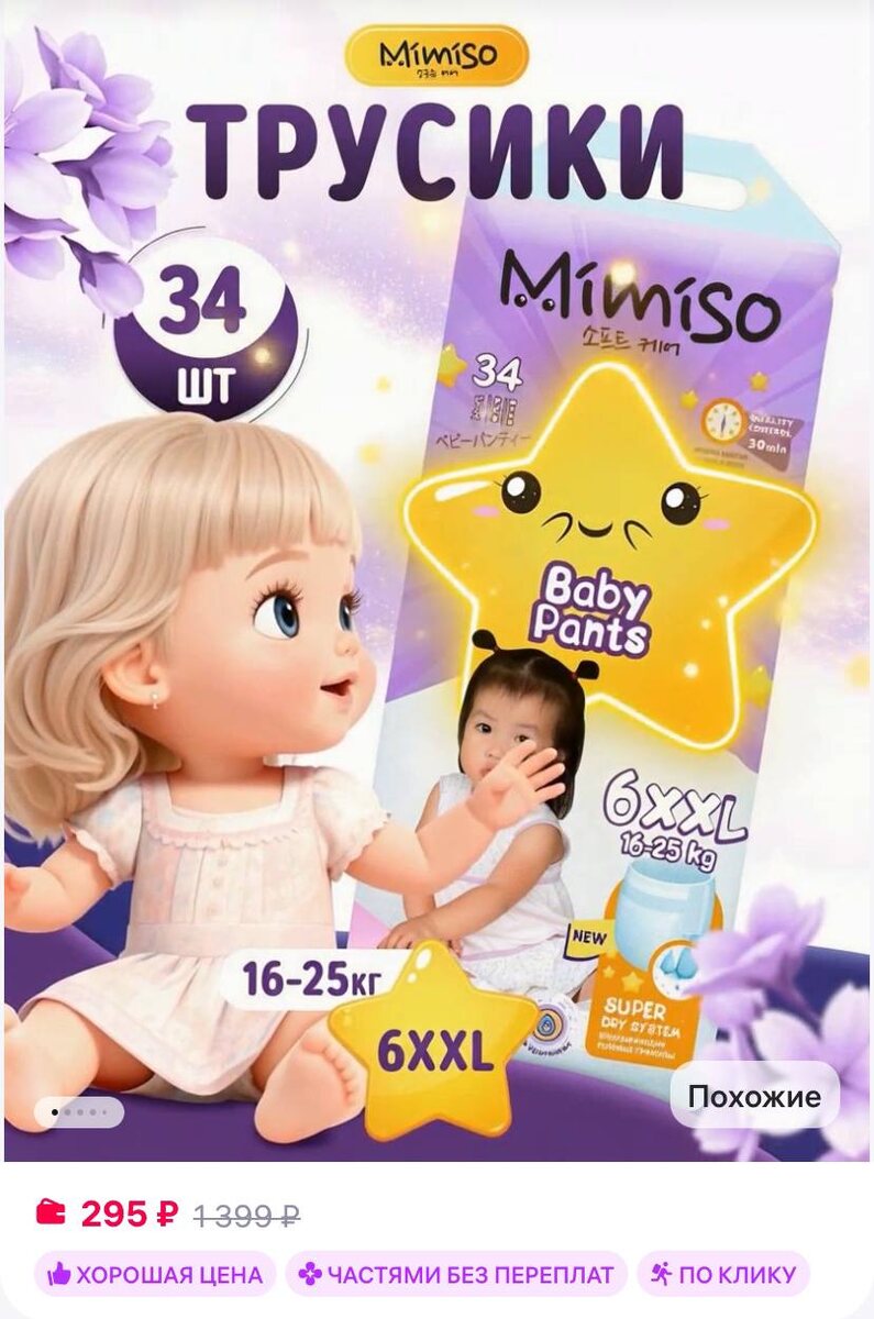 Mimiso Подгузники трусики 6 размер XXL для детей 16-25 кг 34 шт https://www.wildberries.ru/catalog/55872859/detail.aspx?size=102486855 ✅ Подписаться 🔣 Бот с промокодами