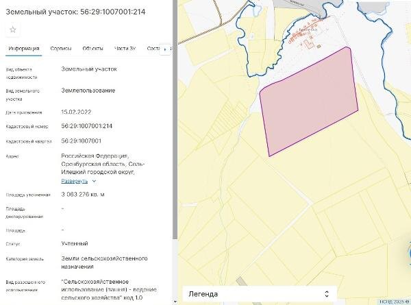 Название: Земельный участок с кадастровым номером 56:29:1007001:214, площадь 3063276 кв.м., по адресу Российская Федерация, Оренбургская
