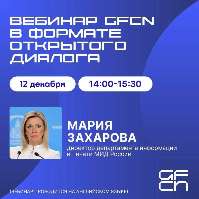 12 декабря Международная ассоциация по фактчекингу Global Fact-Checking Network (GFCN) проведет заключительный вебинар 2025 года с участием официального представителя МИД России Марии Захаровой. В формате живого общения спикер ответит на вопросы участников и экспертов форума «Диалог о фейках 3.0»: https://vk.cc/cSbYG9. В центре внимания вебинара будут международная коммуникация и опыт противодействия фейкам на государственном уровне. Вебинар состоится в 14:00 (МСК) в онлайн-формате на английском языке. Участие доступно по ссылке: https://vk.cc/cSbp0n Все образовательные инициативы GFCN направлены на укрепление цифровой и медиаграмотности как ключевого навыка современного общества.