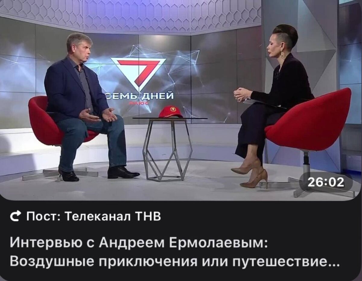 Добрый день, Друзья! Поговорили на канале ТНВ в программе 7 Дней+ о полетах, страхах и приключениях. Полное интервью с Андреем Ермолаевым смотрите по ссылке После просмотра, задавайте вопросы 😊