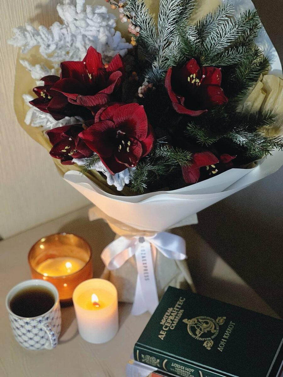 Все, кому я предлагаю начать думать над планами на праздники, отмахиваются — «нет новогоднего настроения». А я считаю, что если не запланировать все заранее, то ничего само собой не случится. Если начать даже без настроения, к моменту, когда оно появится, будут ёлка, билеты в театр и платье, чтобы в этот театр идти. А может и не надо ждать настроения, что оно появится само собой, а создавать условия для того, чтобы оно появилось. Без особого предновогоднего волшебства я покупала платье, ходила на фотосессию и заказывала доставку елки. Покупала билеты на спектакль на 30 декабря себе и близким. А вот сегодня случился первый огонечек, первый проблеск праздничного предвкушения. Знаете, от чего? Я открыла дверь встречать курьера, а из лифта вышел парень с коробкой в половину меня. В коробке был зимний букет с еловыми веточками — первыми в этом сезоне. И вот он пахнет шубой с мороза, сладким черным чаем к торту, мандаринами. Пахнет праздником, который скоро наступит. Мой букет из магаз