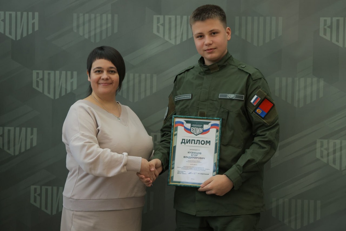 Юный прокопчанин занял третье место на всероссийском конкурсе эссе «Связь поколений». Центр «ВОИН» провел Всероссийский конкурс эссе «Связь поколений» при поддержке Роспатриотцентра и «Юнармии». Это событие было посвящено 80-летию со дня Победы в Великой Отечественной войне. Среди них были определены 16 финалистов – обладателей гран-при регионального этапа конкурса. Это курсанты из Бурятии, Донецкой Народной Республики, Калмыкии, Татарстана, Чувашии, Якутии, Камчатского и Хабаровского краев, Волгоградской, Кемеровской, Мурманской, Псковской, Сахалинской, Свердловской, Тюменской и Херсонской областей. Третье место из 16 финалистов конкурса занял курсант Центра «ВОИН» в Кузбассе Егор Кузнецов из города Прокопьевска. В своей работе Егор рассказал историю своего двоюродного прадедушки Марущенко Андрея Власовича, гвардии старшего лейтенанта, командира батареи «СУ-100». В составе полка прошел не одну битву, был несколько раз ранен и получал контузии. По данным карты наступательных операц