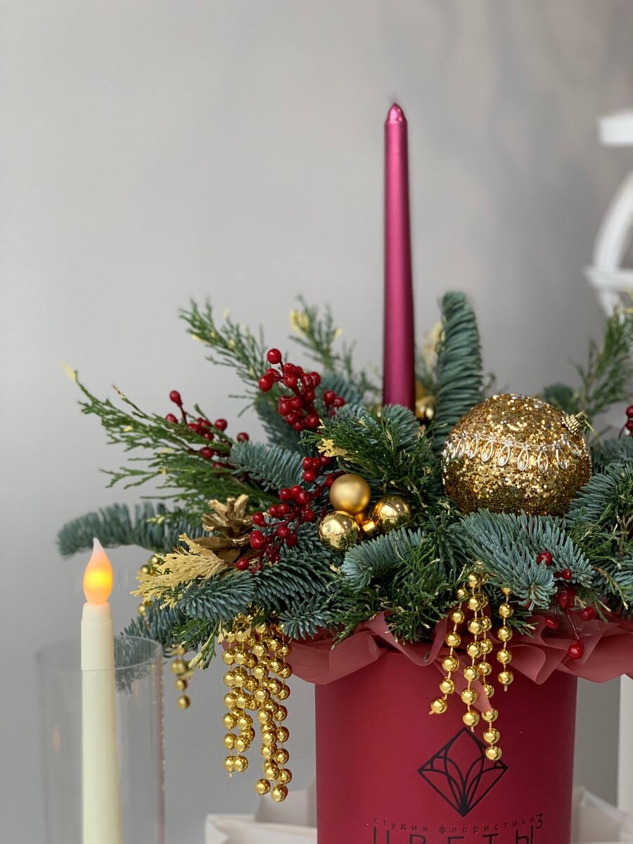 Композиция в шляпной коробке со свечой 3300р