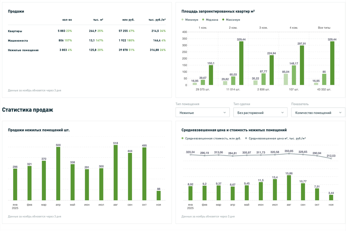 Распределение по сегментам: Комфорт-класс — 89 домов, Бизнес-класс — 227 домов, Элитный сегмент — 48 домов. Это важный вывод: ядро рынка