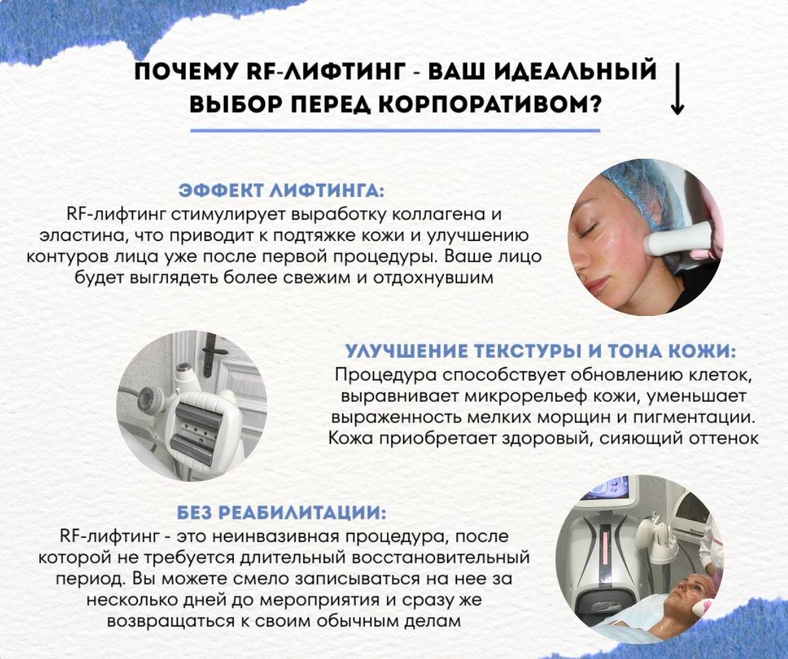 ЧАСТЬ 2 Сияйте на корпоративах благодаря RF-лифтингу! ✨ Приближаются праздники, и каждая из нас хочет выглядеть на корпоративе на все сто! Если вы ищете способ: 👉 быстро освежить кожу 👉 подтянуть овал лица 👉 придать коже здоровое сияние Обратите внимание на RF-лифтинг. Спешите записаться на RF-лифтинг и подарите себе уверенность и неотразимый вид на корпоративе! ✨ 📞Запись по телефону: 89268583321 ✈️ Записаться онлайн 📱 Администратор в TG: @BarobeautyB