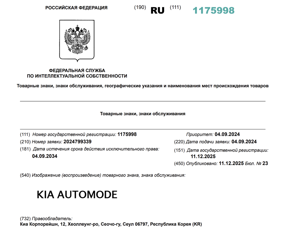 Компания Kia продолжает расширять свое присутствие в России на уровне интеллектуальной собственности. По данным SHOT, производитель подал в Роспатент заявки на регистрацию ещё двух товарных знаков. Первый бренд — Kia Automode. Под этим названием компания развивает комплекс систем автономного вождения и ассистентов, рассчитанных на повышение комфорта и безопасности. Платформа будет адаптировать настройки под манеру и динамику езды конкретного водителя. Внедрение технологии ожидается в следующем модельном году. Второй — уже знакомый бренд Kia Uvo. Это мультимедийная и телематическая система, позволяющая управлять автомобилем дистанционно через мобильное приложение, а также отвечающая за информационно-развлекательные функции. Заявки поданы напрямую центральным офисом Kia в Южной Корее. В начале декабря компания также зарегистрировала в России товарный знак «Киа. Проверено с пробегом». Подписаться на Авто Mail в мессенджере MAX