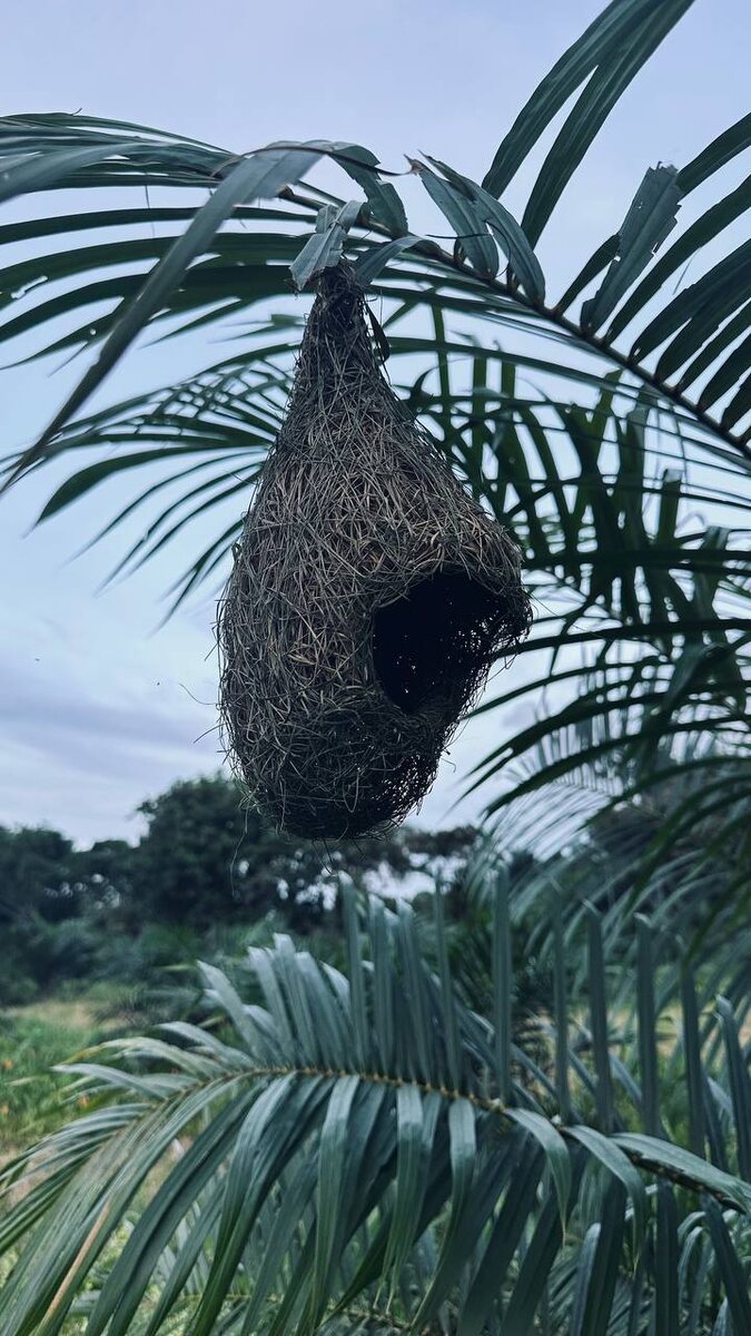 Нашел колонию потрясающих ткачиков. Несколько десятков гнезд, сплетенных не менее искусно, чем у африканских. Очень хотел снять строительство гнезда, подполз метров на 20 и залег под пальмочкой. Но птицы настолько осторожны, что два часа меня промурыжили, до самых сумерек. Но так и не занялись снова делом… Придется утром, еще по темное, снова сюда ползти и притворяться рождественской елкой, а вдруг удастся снять…