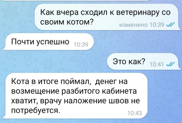 Так что за результат и последствия посещения клиники кошка не отвечает. Сами, как говорится, виноваты.