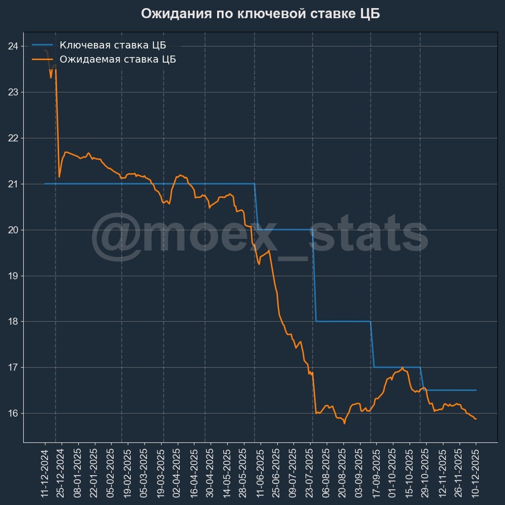 ▶️ Ожидания по ключевой ставке ЦБ 🛍 Аналитики ожидают снижение ключевой ставки на 0.5-1 % на ближайшем заседании ЦБ 19 декабря. ⁉️ Но могут взять и паузу так как с января будет повышен НДС что негативно отразится на инфляцию. 📉 Инфляция за 2025 год может уйти ниже 6% ✔️ По данным Росстата, рост потребительских цен со 2 по 8 декабря составил 0,05% после 0,04% с 25 ноября по 1 декабря, 0,14% с 18 по 24 ноября и 0,11% с 11 по 17 ноября. ✔️ Годовая инфляция в РФ замедлилась с 6,64% на конец ноября до 6,12% на 8 декабря, если ее рассчитывать из недельной динамики. С начала месяца цены к 8 декабря выросли на 0,06%, с начала 2025 года — на 5,31%. Всем удачных инвестиций и зелёных портфелей !🍸 Подписывайтесь: ➡️Телеграм ➡️ Пульс ➡️ MONDIARA ➡️ БАЗАР 🌍Инвест Доход в Дзене🌍