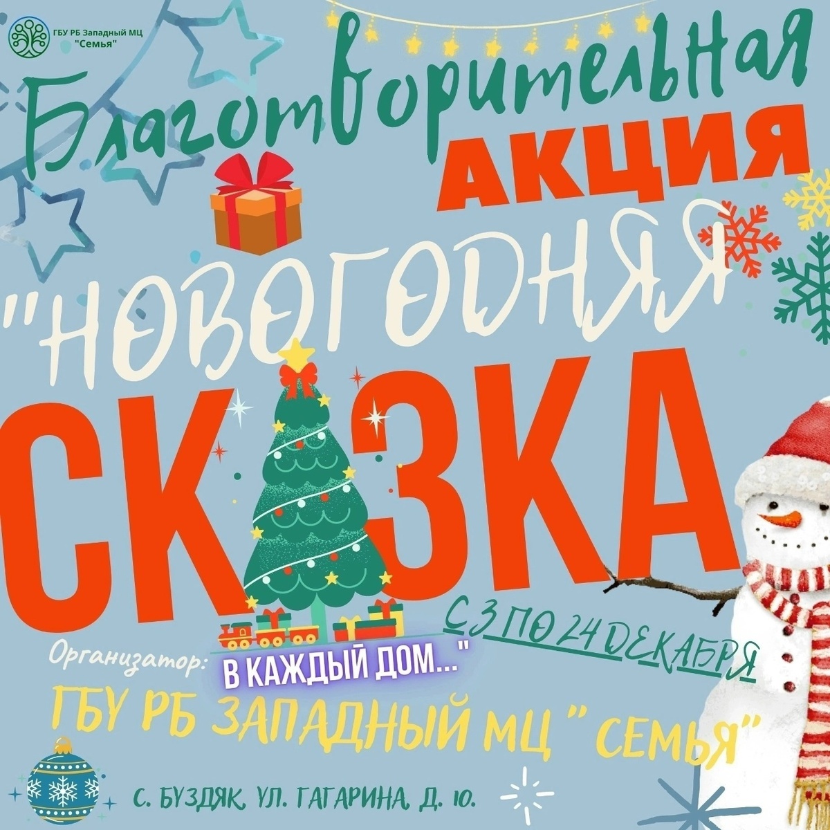 Служба семьи в Буздякском районе приглашает жителей села и района принять участие в акции «Новогодняя сказка в каждый дом!» - сборе новогодних подарков для семей, нуждающихся в поддержке.