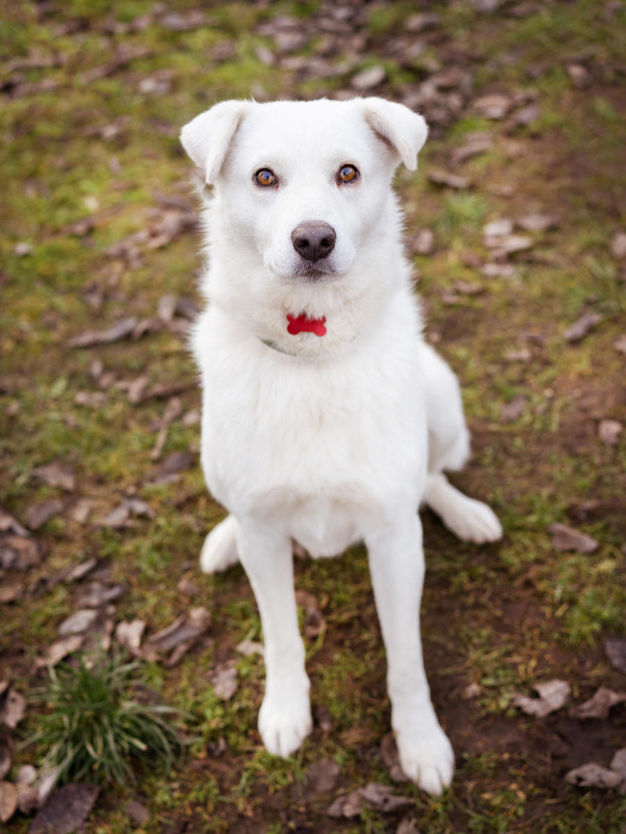 Он с радостью относится ко всем людям, спокойно относится к незнакомцам - с первой же встречи идёт на контакт и позволяет себя гладить, но может испугать резкого взмаха руки, или неожиданного прикосновения сзади (никакой агрессии не проявляет, просто весь сжимается, втягивает голову и как-будто ждёт удара). А как понимает, что никто зла не причинит, снова радостно виляет хвостом и идёт обниматься.