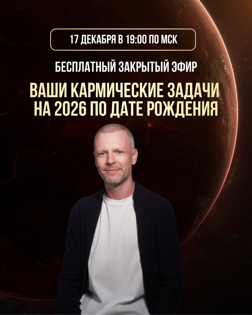 Ваши кармические задачи уже упаковали чемоданы и собираются ехать с вами в 2026 год. Без билета и даже без приглашения😏 🔥17 декабря в 19:00 по мск я проведу бесплатный эфир «Ваши кармические задачи на 2026 год по дате рождения».