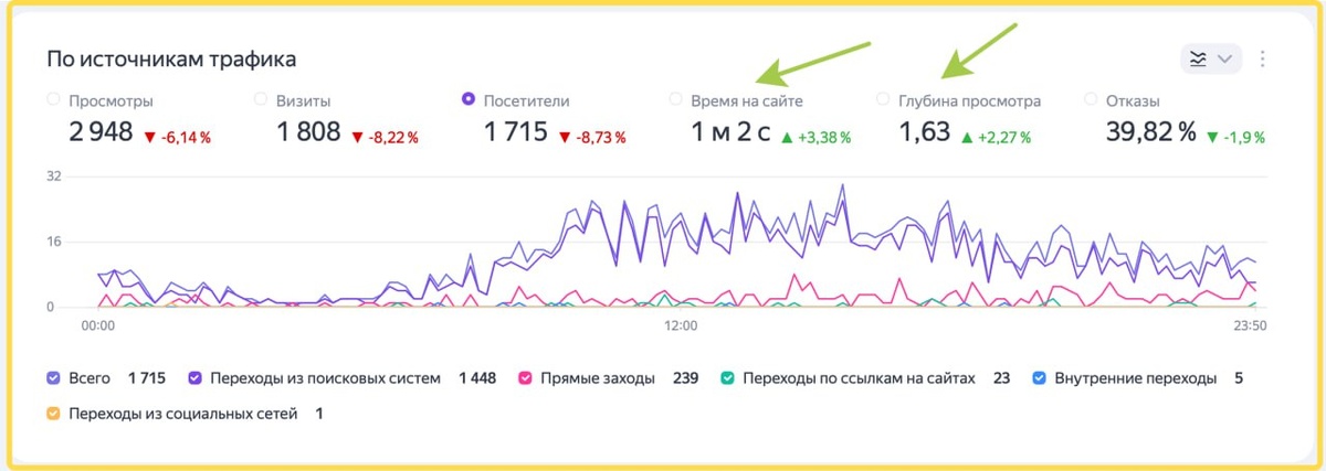 По поводу ботов на сайте. Боты есть, несомненно и не в малом количестве. Но обычно вас пугают тем, что их до 80% и нельзя верить метрике. Это легкое заблуждение. Вот цифры за вчера (один день) по проекту poisk.im, без роботности. Время на сайте 1 минута. Глубина 1.63. Отказы еще подводят, но потихоньку снижаем. Если взять данные за неделю цифры еще лучше. Средний показатель отказов по разным индустриям обычно находится в диапазоне 41–55%, при этом доля отказов из органического поиска около 43–44%. Для e‑commerce и похожих сайтов-каталогов средняя глубина около 1,5 страницы за сессию, то есть пользователи часто смотрят 1–2 страницы и уходят. Это замеры по множеству сайтов. Если брать наши цифры, то отказы 39% - это ниже среднего по рынку и даже попадает в зону «очень хороший» (ниже 40% обычно трактуют как отличный показатель по отказам). К чему это пишу - не верьте тем, кто будет лить вам в уши мед про то, что "у вас на сайте одни боты, ужас, надо срочно что-то делать"... Посмотрит