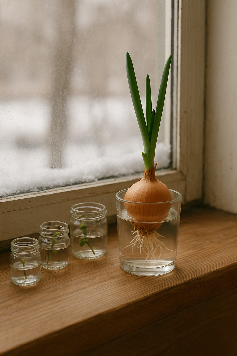 Зимой жизнь будто замирает: сад укрыт снегом, грядки спят, птицы прилетают всё реже. Но стоит мне подойти к подоконнику — и я вспоминаю, что чудеса никуда не исчезают. Они просто перебираются туда, где тепло, светло и есть хотя бы капля заботы. Каждый год, как только наступает декабрь, мои подоконники оживают. И я ловлю себя на мысли: сколько красоты мы порой не замечаем, если не посмотрим внимательнее. Каждый раз я ставлю на подоконник пару луковиц — зелёный лук, чеснок, иногда луковицу гиацинта. И каждый год удивляюсь заново: в январе, когда всё вокруг сонное, они тянутся вверх с такой силой, будто за окном май. Что я наблюдаю: И главное — в доме появляется аромат свежести, которого так не хватает зимой. На листьях моих комнатных цветов — особенно у спатифиллума и фикуса — зимой всё чаще появляются капельки. Они выступают на кончиках листьев тихими прозрачными бусинками. Это явление называется гуттация, но для меня оно — маленький знак, что растение живёт, дышит и благодарит за тепло