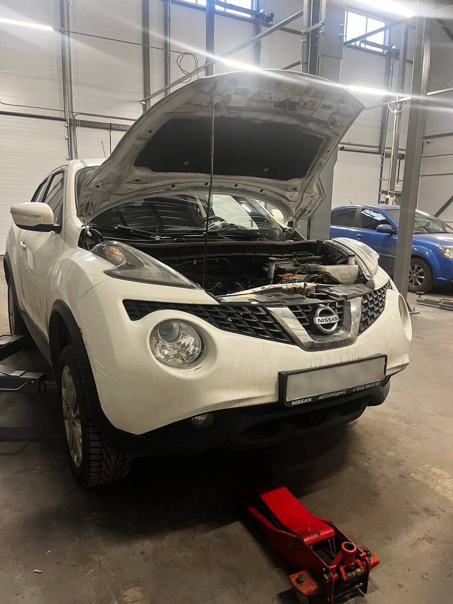 🔧 Устраняем утечку и приводим в порядок крышку ГРМ на Nissan Juke. Приехал к нам на плановое ТО Nissan Juke. Пробег на момент визита был около 100 000 км. Изначально планировалась просто замена масла в двигателе. Мы начали с осмотра по 49 параметрам и в наши планы были введены корректировки. 👉🏼 При диагностике обнаружили утечку по крышке цепи ГРМ — герметик потерял герметичность. Решили переклеивать крышку, чтобы устранить течь. Для доступа к крышке демонтировали коллектор и заодно заменили его прокладку. Далее сняли дроссельный узел — обновили так же прокладку и почистили сам дроссель — маленький приятный бонус для владельца. Затем вывесили двигатель, открутили опору, сняли ремни и демонтировали шкив коленвала, чтобы получить полный доступ к крышке цепи ГРМ. Сняли крышку, тщательно отмыли её, убрали остатки старого герметика и подготовили поверхность под новую проклейку. Поскольку сальник коленвала расположен прямо в крышке, а старый уже задубел — грех было не обновить его при