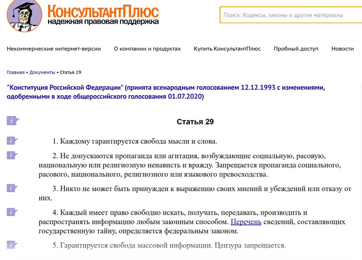 1. Каждому гарантируется свобода мысли и слова.