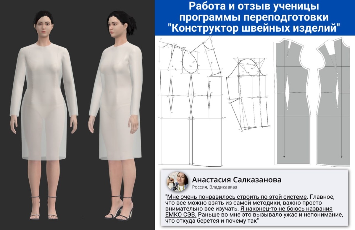 📒 Работа конструктора начинается с базы ⌨️ На нашей программе профессиональной переподготовки «Конструктор швейных изделий» ученики изучают две методики – ЕМКО СЭВ и ЦОТШЛ: строят чертежи БК плечевых и поясных изделий, изготавливают цифровые и виртуальные макеты. 😊 Делюсь работой и отзывом ученицы по методике ЕМКО СЭВ: Мне очень понравилось строить по этой системе. Главное, что все можно взять из самой методики, важно просто внимательно все изучать. Я наконец-то не боюсь названия ЕМКО СЭВ. Раньше во мне это вызывало ужас и непонимание, что откуда берется и почему так. Она построила чертёж в CorelDRAW, проверила посадку в Style3D, а затем выполнила макет в материале. ✔️Такая последовательность помогает понять, как лекала превращаются в объемную форму, и можно сразу оценить объем на всех участках, откорректировать линии. 📐Многие ученики на этом курсе впервые выполняют чертежи в электронном виде, поэтому используют CorelDRAW – это доступный и понятный инструмент для начала работы