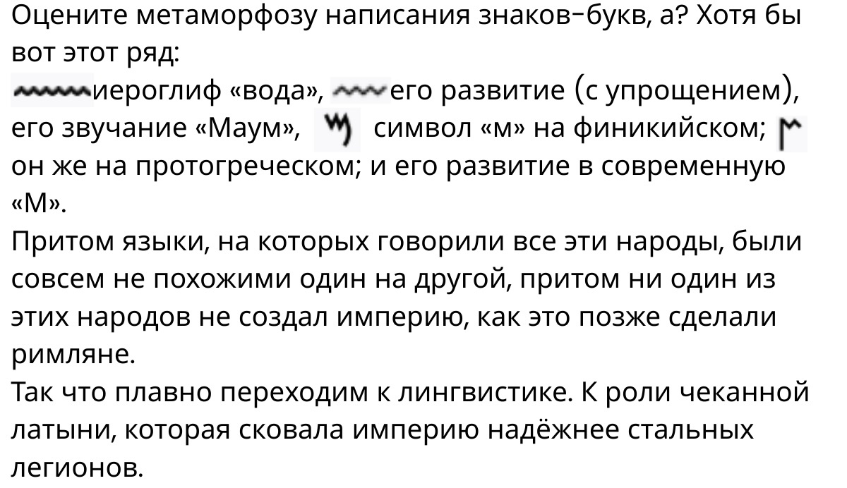 За примерами далеко ходить не надо. Римская империя античных времён во многом объединила народы, входящие в неё, не только военной силой, но и повсеместным введением в оборот латиницы. Которая, в своё время была создана на основе этрусского алфавита - от этруссков, заселявших Апеннинский полуостров задолго до предков Ромула и Рема, вскормленных волчицей. Этрусски, впрочем, тоже не были большими оригиналами, позаимствовав свою систему знаковой передачи информации у греков. Притом ту, что сложилась в западных греческих колониях.