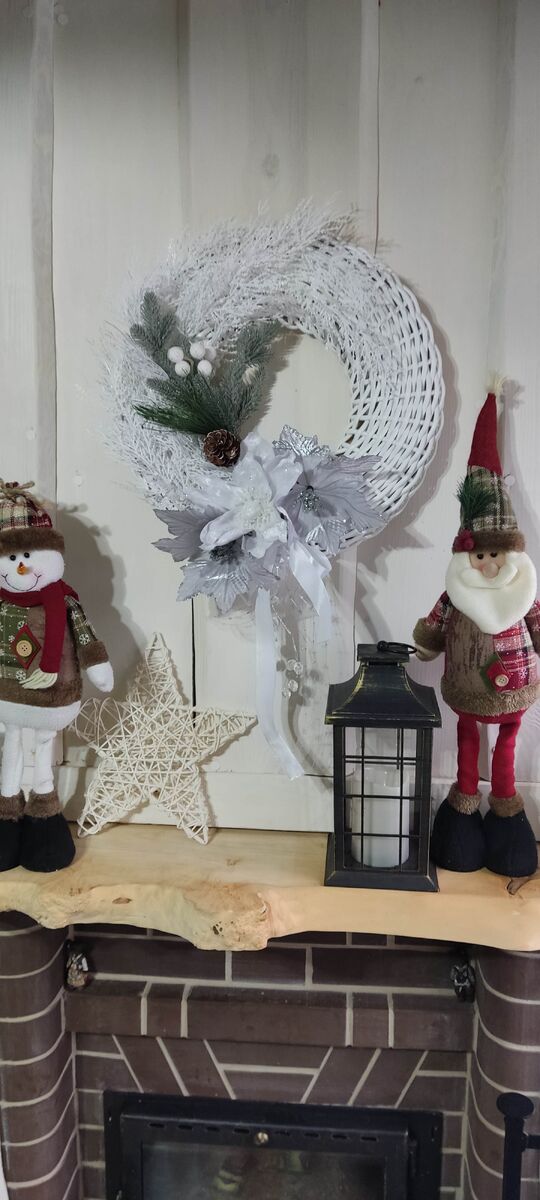 Елка получилась довольно тяжёлая и по высоте больше метра. Установила на пень,покрашенный фасадной коричневой краской. Хочу его доработать,приделать две ручки кольца с двух сторон и колёсики на дне, чтобы можно было его спокойно перемещать. Летом он выполняет роль подставки для кашпо с цветами.Из остатков ивовых прутьев сделала звезду, тоже достачно большая получилась.