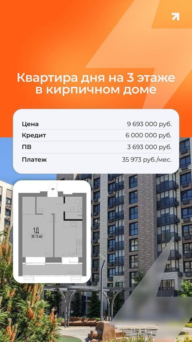 Квартира дня 35,9 м2 в сданном ЖК в Приволжском районе, г. Казани. ⚪️ Ключи в день покупки ⚪️ 10-ти этажный кирпичный дом на Кул Гали. ⚪️ Двор-парк ⚪️ Большая территория с бесплатной парковкой В проекте осталось всего две 1ккв.⚡ Подробности в личных сообщениях.