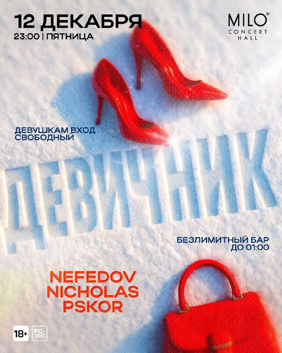 Снег — не помеха Девичнику! Прямо с порога мэйк-зона и фри бар до 1:00 — что еще нужно для ночи пятницы? Парни, для вас — армрестлинг на 10000 ₽ от клуба. line-up: Nefeov / Nicholas / Pskor Milo Concert Hall 😄 Мероприятия Нижний Новгород. Я местный! 📱 Telegram | 📱 MAX