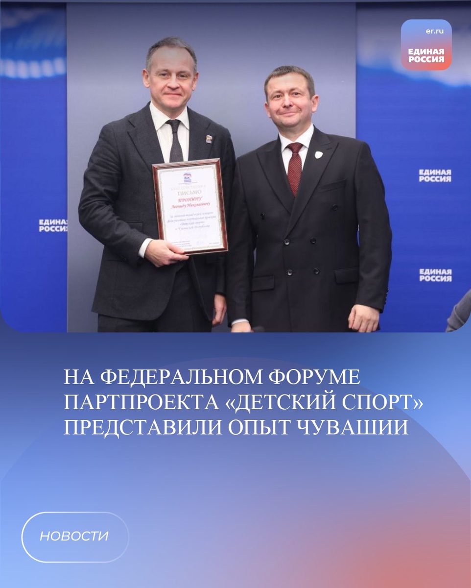 На федеральном форуме партпроекта «Детский спорт» представили опыт Чувашии. На нём представили промежуточные итоги реализации проекта и планы на 2026 год. Свои опытом поделились региональные координаторы и председатели общественных советов партпроекта «Детский спорт», эксперты, представители федеральных и региональных органов исполнительной власти в сфере спорта. Участники форума обсудили развитие школьного и массового спорта, доступность спортивных программа для школьников, проведение фестивалей по различным видам спорта. О реализации в Чувашии партийного проекта «Детский спорт» рассказал его региональный координатор, депутат Госсовета Чувашии Леонид Пронин. Команда «Единой России» в республике под руководством секретаря регионального отделения Леонида Черкесова, участвует во всех активностях партпроекта. Подробнее о реализации партпроекта в регионе -https://chuvash.er.ru/activity/news/na-federalnom-forume-partproekta-detskij-sport-predstavili-opyt-chuvashii #ДетскийСпорт21 #ЕР2