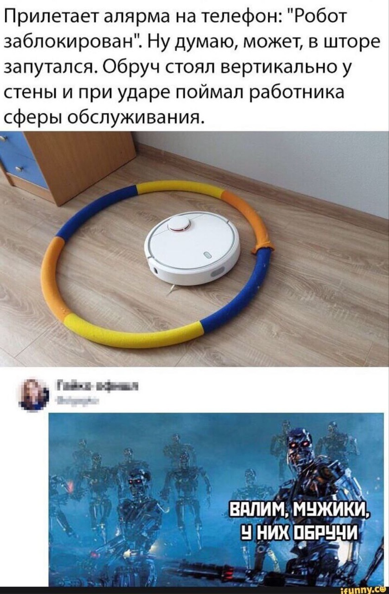 Пришла в гости, а у них робот-пылесос говорящий. Они ему специально программу закачали, чтобы он жужжал по хозяйству и одновременно всё комментировал. Но только он не просто сообщает: "тут уже чисто" или "низкий заряд энергии". Он шутки отпускает, да ещё с матерком. Заползает на ковёр, к примеру, и спрашивает: "Вы чë, медведя завалили?" - Какого ещё медведя? - я от изумления начала с пылесосом разговаривать. "Живëте, как древние люди - со шкурой в пещере. - Продолжает ворчать пылесос, ползая по ковру. - Жесть! В ней столько пыли! Я сейчас задохнусь!" У меня рот открылся. А хозяин ржëт. Тут пылесос в шкаф врезался и как заорёт: "Ëпта! Чë за гроб?! Его же тут не было!" (Так и сказал, я не вру). - Не выдумывай, железяка, шкаф тут всю жизнь стоит, - прикрикнул на робота хозяин. Дожили до светлых дней: техника с людьми пререкается. "Ладно, мой кожаный шеф, - говорит пылесос, - перехожу в режим уборки!" - Он называет тебя "мой кожаный шеф"?! - спрашиваю, окончательно охре