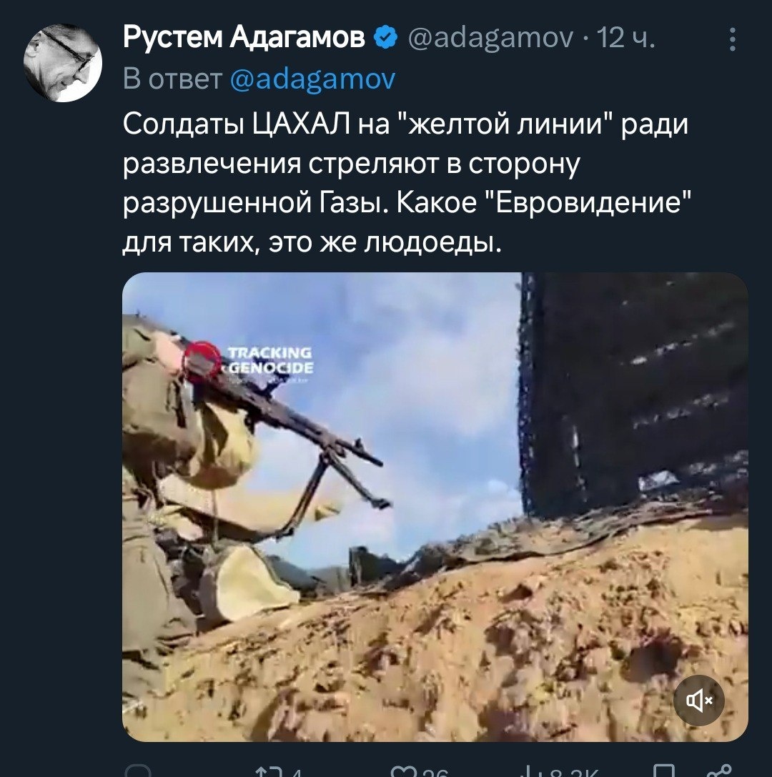 «Мне никогда не нравилось «Евровидение». Даже не говоря о том, что его условия позволяли евреям жульничать и побеждать. А сейчас, после чудовищной резни в Газе и вовсе израильское участие кажется невозможным. Но организаторы, шабес-гои и продажные твари, решили все равно допустить Израиль до этого позорного соревнования. Как уступку обществу они подтянули правила, и теперь евреям будет труднее жульничать. Но народ, великий своими Миндичами и прочими прохвостами, наверняка справится и с этой проблемой… А организаторов - к позорному столбу».