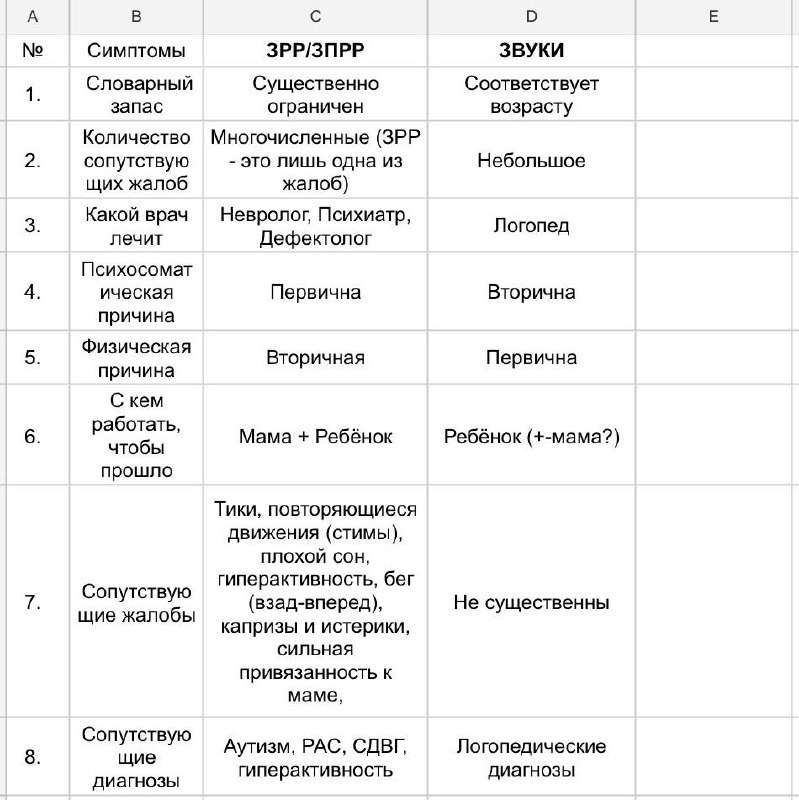 📢 ЗРР/ЗПРР и ЗВУКИ РЕЧИ ☝🏻Внес важные изменения в п. 9, 10, 11 в Сравнительная таблица ЗРР/ЗПРР и Звуки Речи (Р, Ш, Л и др.) ☝🏻 Важно: Если Вы корректируете у своего ребёнка Звуки, а у него ЗРР/ЗПРР, то Вы не добьетесь успеха! Потому что, с тз Психосоматики, «молчание» при ЗРР/ЗПРР - это адаптация к тем условиям (схема ситуации), в которых находится ребёнок: ♦️ речь не понадобится; ♦️ молчать чтобы не заметили #зрр #зпрр #зпрр@osteopat_legoshin #зрр@osteopat_legoshin