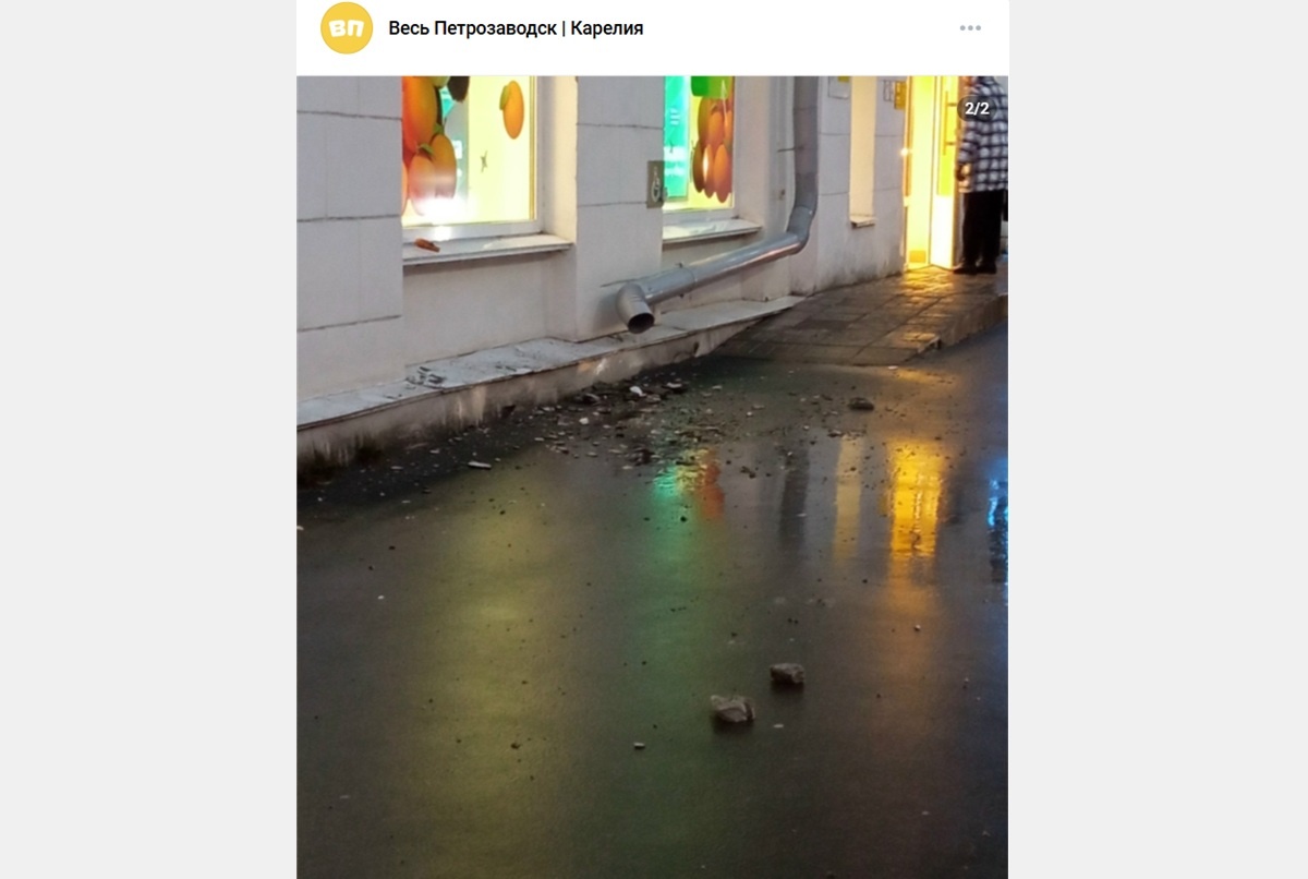 Петрозаводчанам стоит быть осторожными на тротуарах. Сезон падающих сосулек еще не открыт, но штукатурка срывается с фасадов домом и летит вниз. Пока никого не задело. Об опасности горожан предупреждают в сообществе «Весь Петрозаводск». С дома № 31 по проспекту Александра Невского второй раз за неделю с карниза дома рухнула штукатурка. Куски внушительных размеров сфотографировали на пешеходной дорожке. «Каждый год весной и осенью сосульки, снег, штукатурка падают на тротуар. Кто контролирует управляющую компанию этого дома?! Ждете, пока людей покалечит? Обломки размером с половину кирпича!» - возмущаются в паблике.