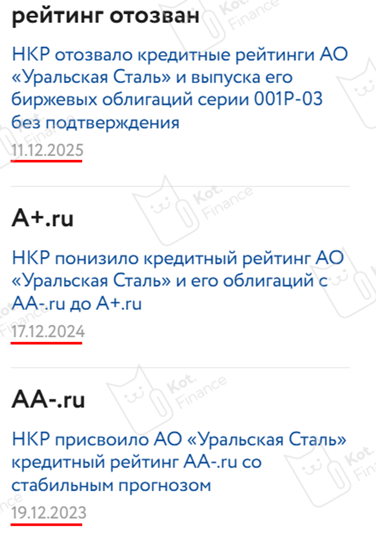 🔻НКР отозвал кредитный рейтинг Уральской стали. Ранее действовал рейтинг А+