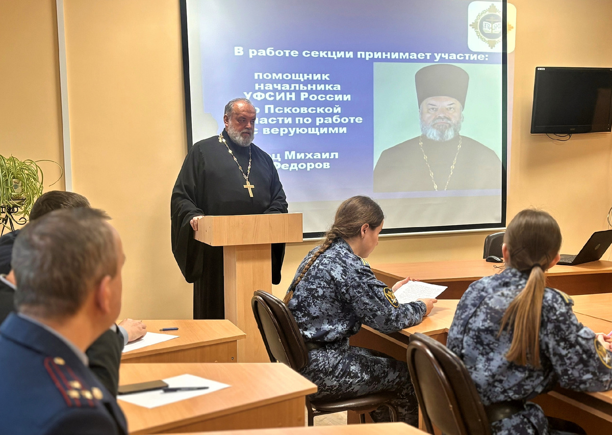 5 декабря 2025 года, в рамках работы регионального этапа XXXIV Международных Рождественских образовательных чтений «Просвещение и нравственность: формирование личности и вызовы времени», в Псковском филиале Университета ФСИН России прошла работа секции «Просвещение и нравственность как основа формирования профессиональной культуры сотрудника уголовно-исполнительной системы». Руководителем секции выступила Оксана Евгеньевна Макаркина, начальник кафедры гуманитарных и социально-экономических дисциплин Псковского филиала Университета ФСИН России, полковник внутренней службы, кандидат педагогических наук, доцент. С приветственным словом к участникам чтений обратился руководитель Отдела Псковской епархии по тюремному служению, помощник начальника УФСИН России по Псковской области по работе с верующими священник Михаил Федоров. Отец Михаил отметил, что чтения – это крупнейший церковно-общественный форум, объединяющий вопросы образования, культуры, социального служения, духовно-нравственного