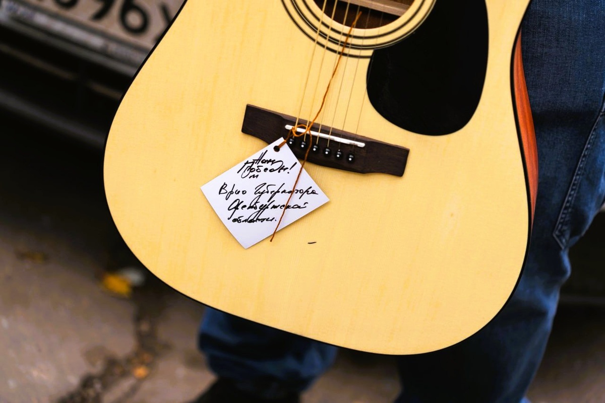 Евгений Солнцев передал гитару военному врачу из ДНР